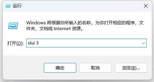 2、输入slui 3 然后点击确定